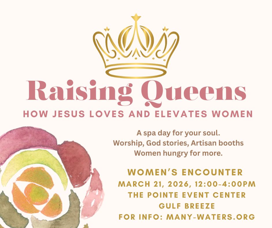 Many Waters Gathering is a 501(c)(3) tax-exempt, non-profit organization. We will provide gatherings for women, men, and couples that encourage raw and honest conversations with God and each other. We always need a safe space to be real with Jesus and with other people. There are two confirmed Many Waters events for 2026. A women’s day event and the well-loved beach retreat.